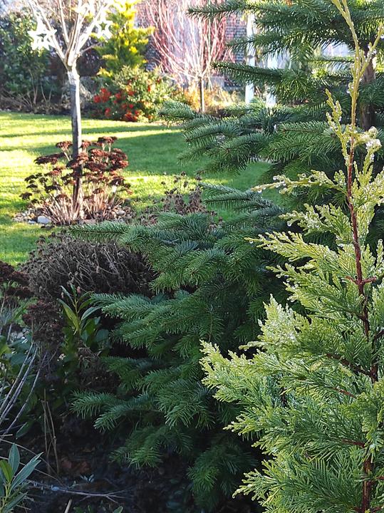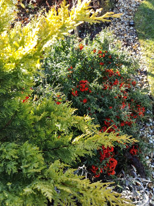 Záhrady v zimnom období sú vyprázdnené, prevažujú zemité tóny farieb. Záhony v lete plné farieb, zmenili sa na tienisté miesta, kde sa v opadanom lísti prehrabávajú neúnavne drozdy a zvedavé sýkorky. Vždy v nej nájdem niečo čo ma poteší. Stálozelené…