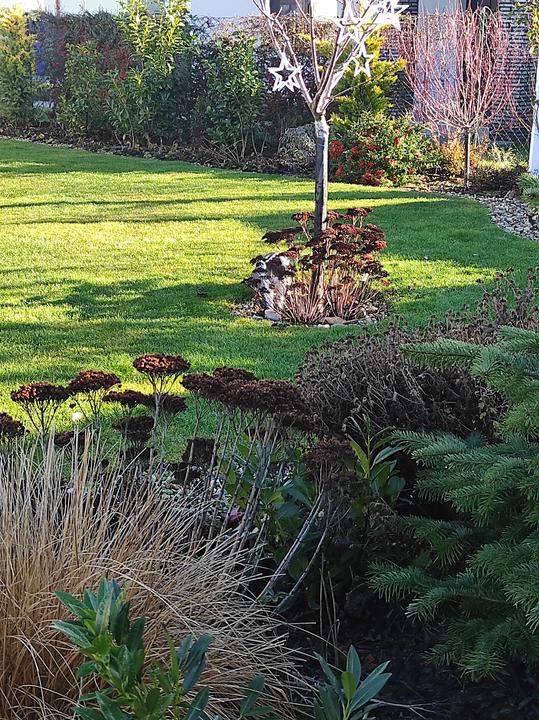 Záhrady v zimnom období sú vyprázdnené, prevažujú zemité tóny farieb. Záhony v lete plné farieb, zmenili sa na tienisté miesta, kde sa v opadanom lísti prehrabávajú neúnavne drozdy a zvedavé sýkorky. Vždy v nej nájdem niečo čo ma poteší. Stálozelené kríky, bylinkové záhony, sem tam ihličnan, tis, vysušené hortenzie, rozchodniky, chryzantémy aj jesenné astry urobia veľkú parádu aj v tomto zimnom období. Neodstraňuje ich, na to bude času dosť aj na jar. Pozývam Vás na malú prechádzku🌲🍀🙂