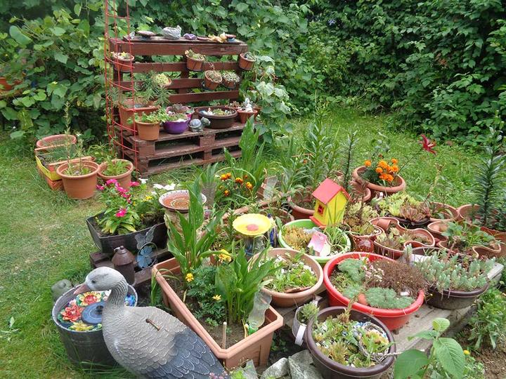 "Záhradu (400 m2) som vytvárala úplne sama. Pôvodne v nej rástli dve staré jablone a tráva. Každú jednu rastlinu som vlastnoručne zasadila. Milujem tú farebnosť a vône. Neskutočne ma baví starať sa o kvietky, vyplievať, dosádzať stále niečo nové. Snažím sa využívať aj staré veci, ktorých sa ľudia zbavujú. Susedia išli napríklad vyhodiť lavicu z paliet, mne poslúžila ako kvetinová "stena". Alebo som našla kopu tehál a z nich mám krásny múrik na skalničky. Do prasknutých poškodených lavórov som si posadila skalné ruže.... V mojej záhrade trávim všetky dovolenky a je to pre mňa najväčší relax." Marcela V., Košice-Ťahanovce