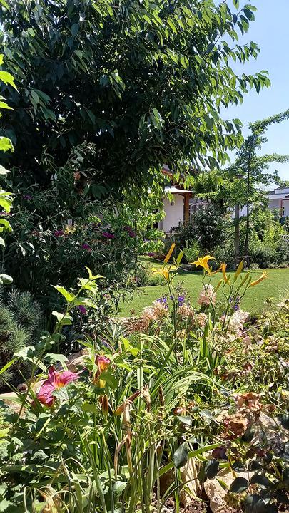 "Záhradu a okolie domu (1200 m2) sme s manželom vytvárali sami počas piatich rokov, čo tu bývame. Kúpili sme úplne čistý kus pozemku. Manžel je veľmi šikovný a má na starosti technické prvky v záhrade. Ja som navrhla a vysadila záhony a starám sa aj o úžitkovú časť záhrady. V našej záhrade mám rada úplne všetko. Všetko v nej som robila tak, aby sa mi páčila, aby sme sa v nej cítili dobre, aby sa deti mali kde zahrať a ak sa u nás cítia dobre aj návštevy, tak sme šťastní." Katarína S., Mojmírovce