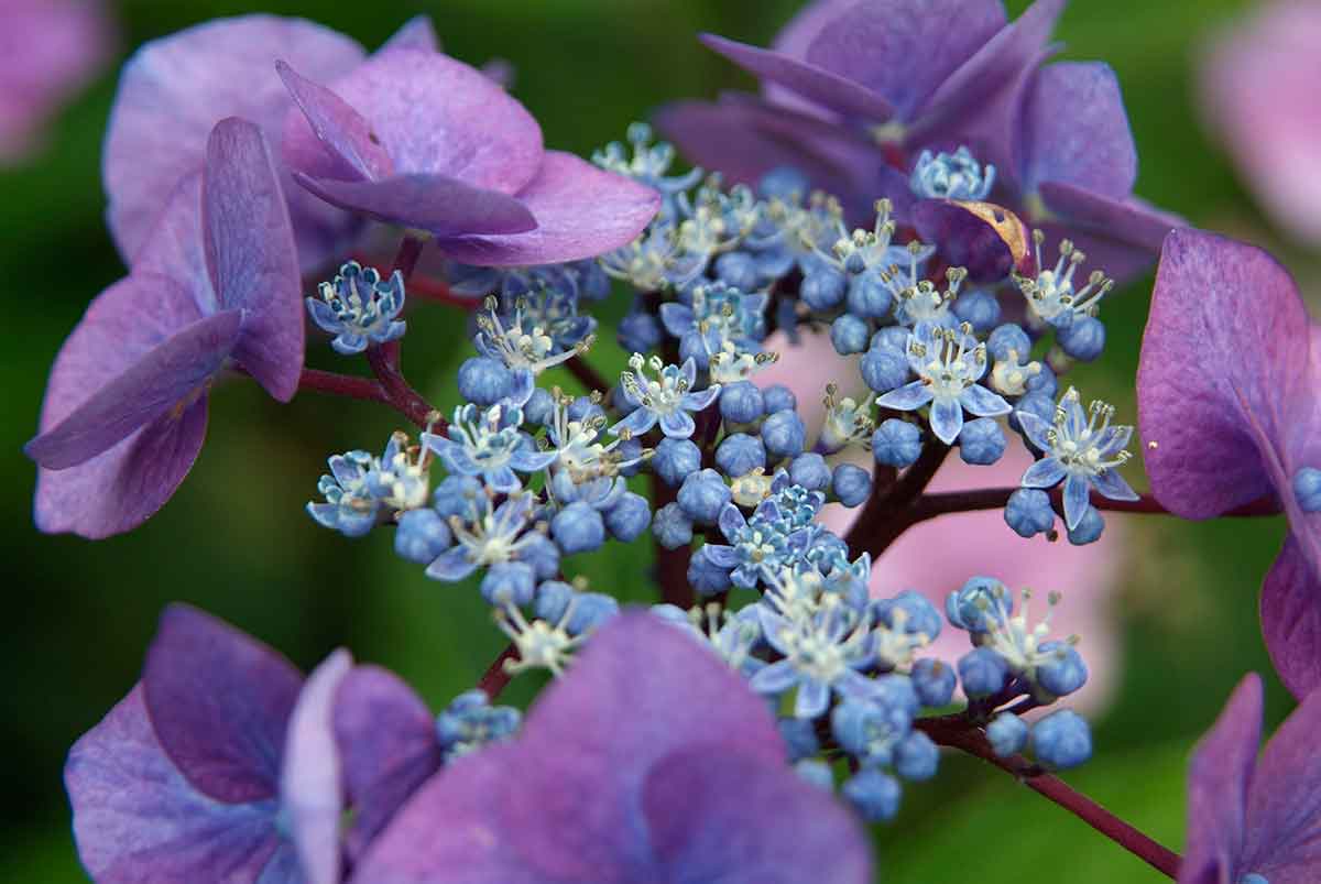 4. Hortenzia pílkovitá ‘Bluebird’ (Hydrangea serrata)