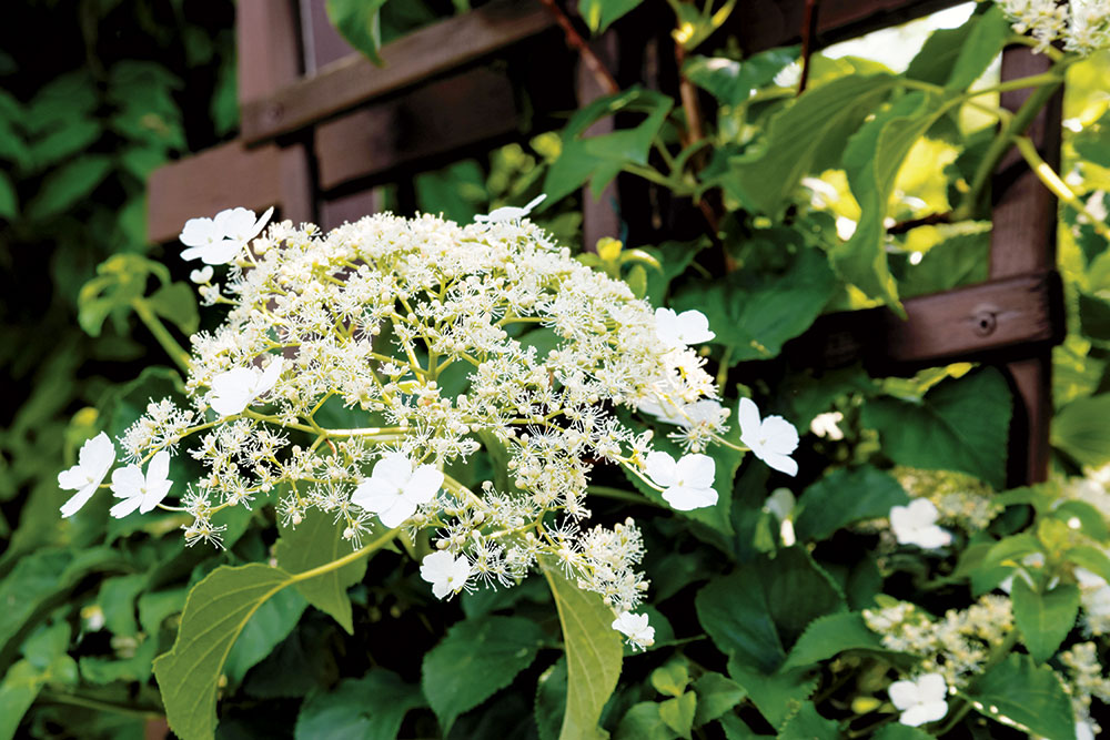 Vyžaduje oporu. Vykvitá v lete drobnými bielymi kvietkami s niekoľkými väčšími sterilnými kvetmi.