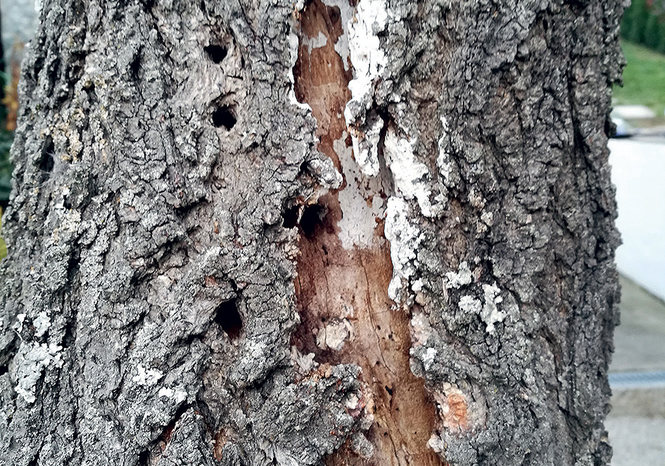 Ak ide o jednu prasklinu, odporúčam ju dobre umytým nožíkom, ktorý môžete aj vydezinfikovať liehom, ošetriť, čiže orezať až na zdravé drevo (spoznáte ho podľa farby, zdravé drevo je cca maslovobiele), zatrieť štepárskym voskom alebo latexom. Aby počas zimy nevznikli ďalšie praskliny, odporúčam kmeň natrieť bielym vápenným mliekom do výšky 1 až 1,5 m podľa toho, aký vysoký je samotný kmeň. Biela farba odráža slnečné žiarenie, bráni tak zahriatiu kmeňa a zvýšenému prúdeniu miazgy, ktorá v noci následkom prudkého ochladenia zamŕza, čo spôsobuje vznik prasklín.