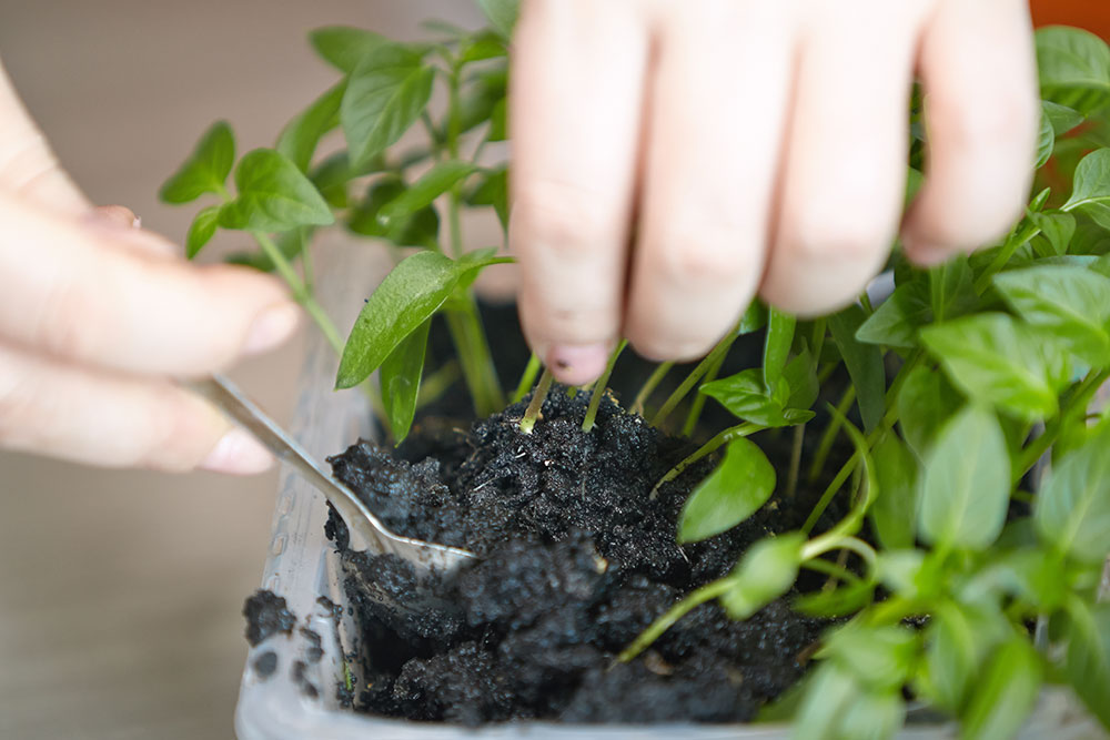 Rastlinky vysadíme samostatne do pripraveného kvetináčika. Kvetináč z rašeliny má tú výhodu, že pri výsadbe von sa už nepoškodia korene, pretože vysádzame aj samotný rašelinový kvetináč.