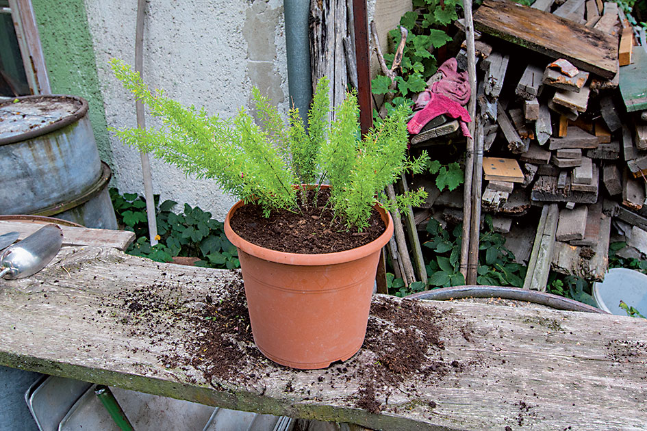 Rôzne druhy asparágusov môžeme kúpiť na trhu. Po kúpe rastlinu presadíme. Začneme odstránením buriny z črepníka, ktorá sa tu veľmi často vyskytuje.