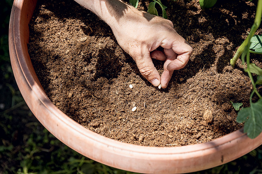 Ak nájdeme v nádobe ešte voľné miesto, môžeme vysiať kríčkovú fazuľku, cca 3 semená do jedného hniezda.