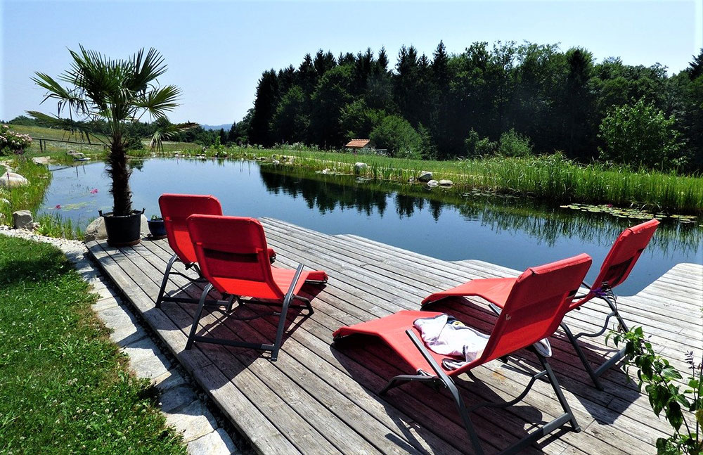 Navyše príjemne ochladzuje okolie. Kúpacie jazierko je aj dôležitým zdrojom vody pre život v záhrade. Slúži ako útočisko obojživelníkov a zdroj vody pre vtáky, motýle, včely a iný užitočný hmyz.