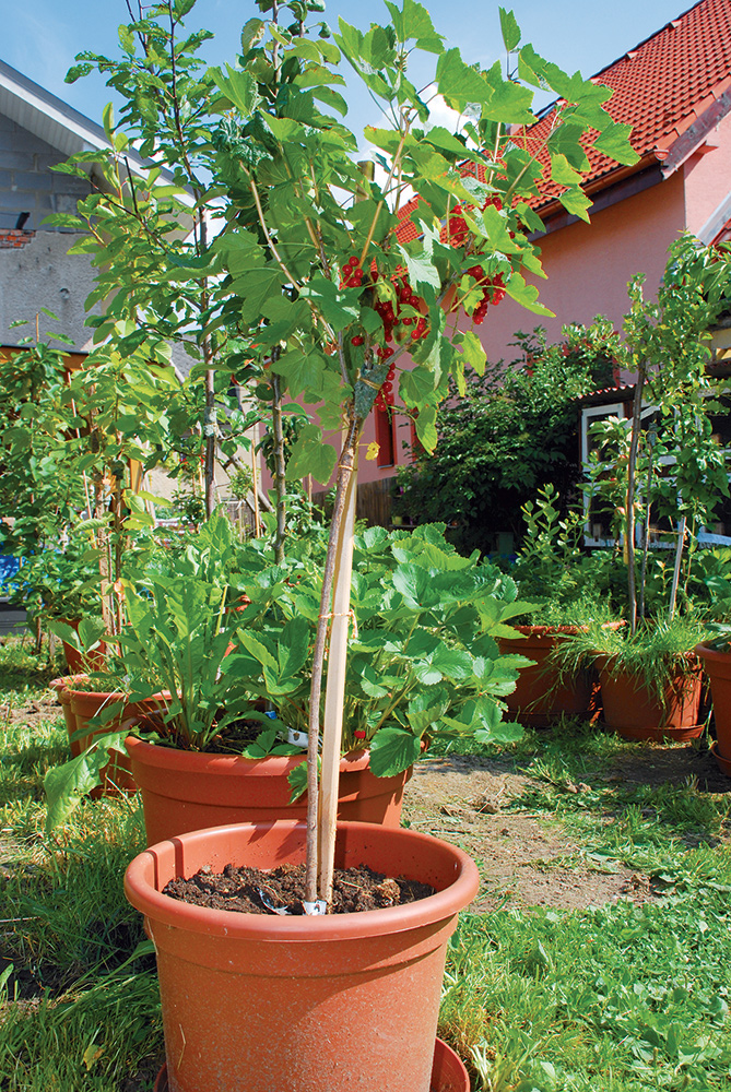 Na ploche niekoľkých štvorcových metrov vytvoríte vďaka veľkým kvetináčom a ľahkým rašelinovým substrátom mobilný ovocný sad, ktorý sa v lete môže vyhrievať na horúcom slniečku a v zime zasa môže oddychovať na prázdnych hriadkach v záhrade. Je to ako malý ovocný svet rozrastajúci sa tempom bonsajov, pričom každý rok bohato zarodí.