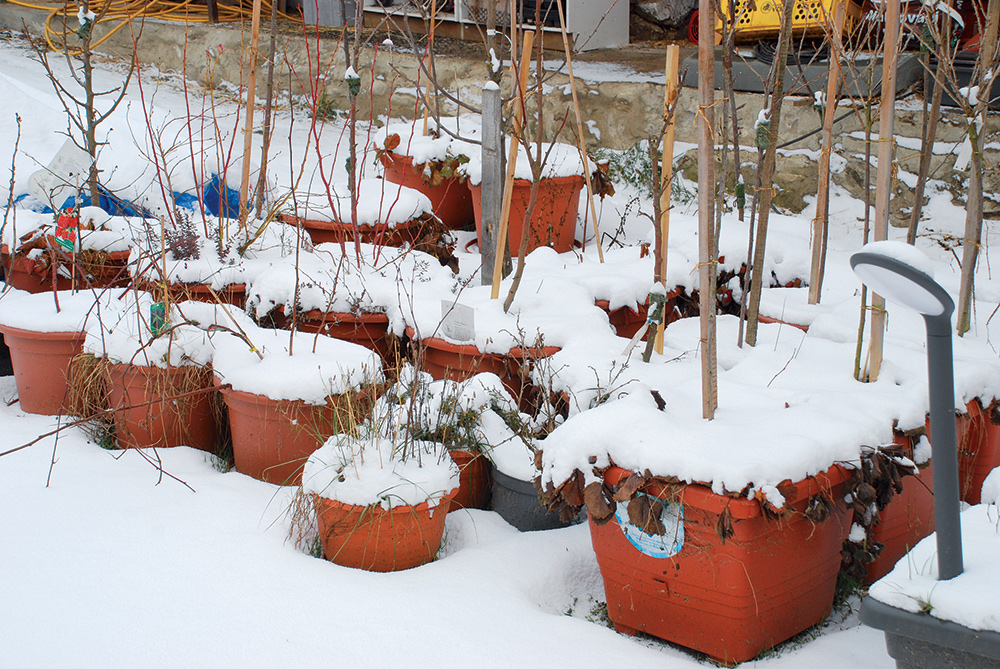 Nie nízke teploty, ale práve vysychanie je najčastejším problémom pri zimovaní drevín v nádobách. Závlahovú starostlivosť teda v zimných mesiacoch nemožno zanedbať. Záleží na klíme a snehovej nádielke, či budete musieť k stromčekom vyjsť iba trikrát za celú zimu, alebo si budú vyžadovať vašu pozornosť každý týždeň. Práve v tomto období sa ukáže, aká je kvalita kvetináčov, do ktorých ste stromčeky vysadili. Nie všetky odolávajú mrazu a rozpínajúcej sa zemi rovnakou húževnatosťou.
