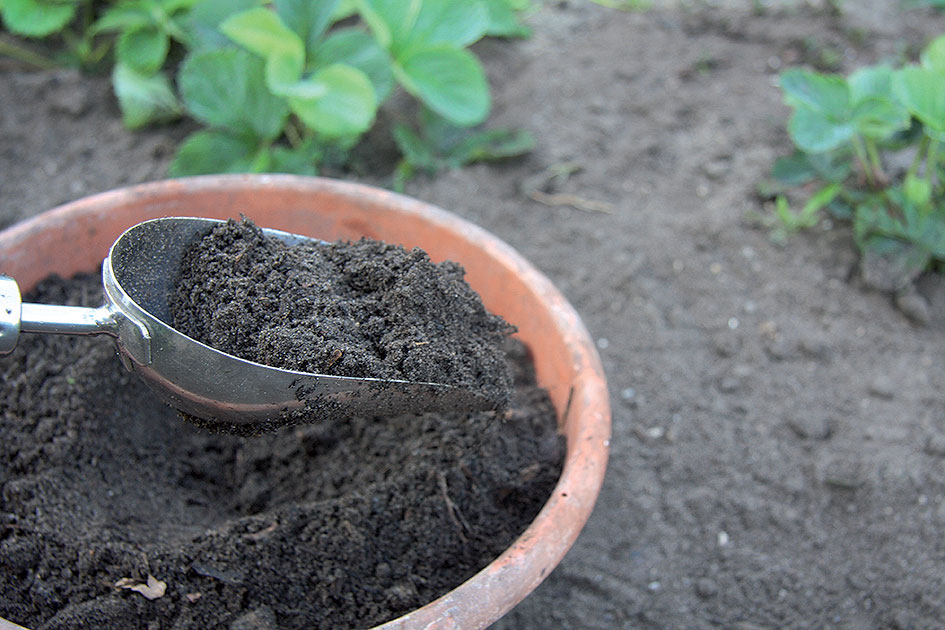 Odburinenú hriadku do hĺbky skypríme a zapracujeme do nej preosiaty kompost alebo špeciálny substrát na jahody.