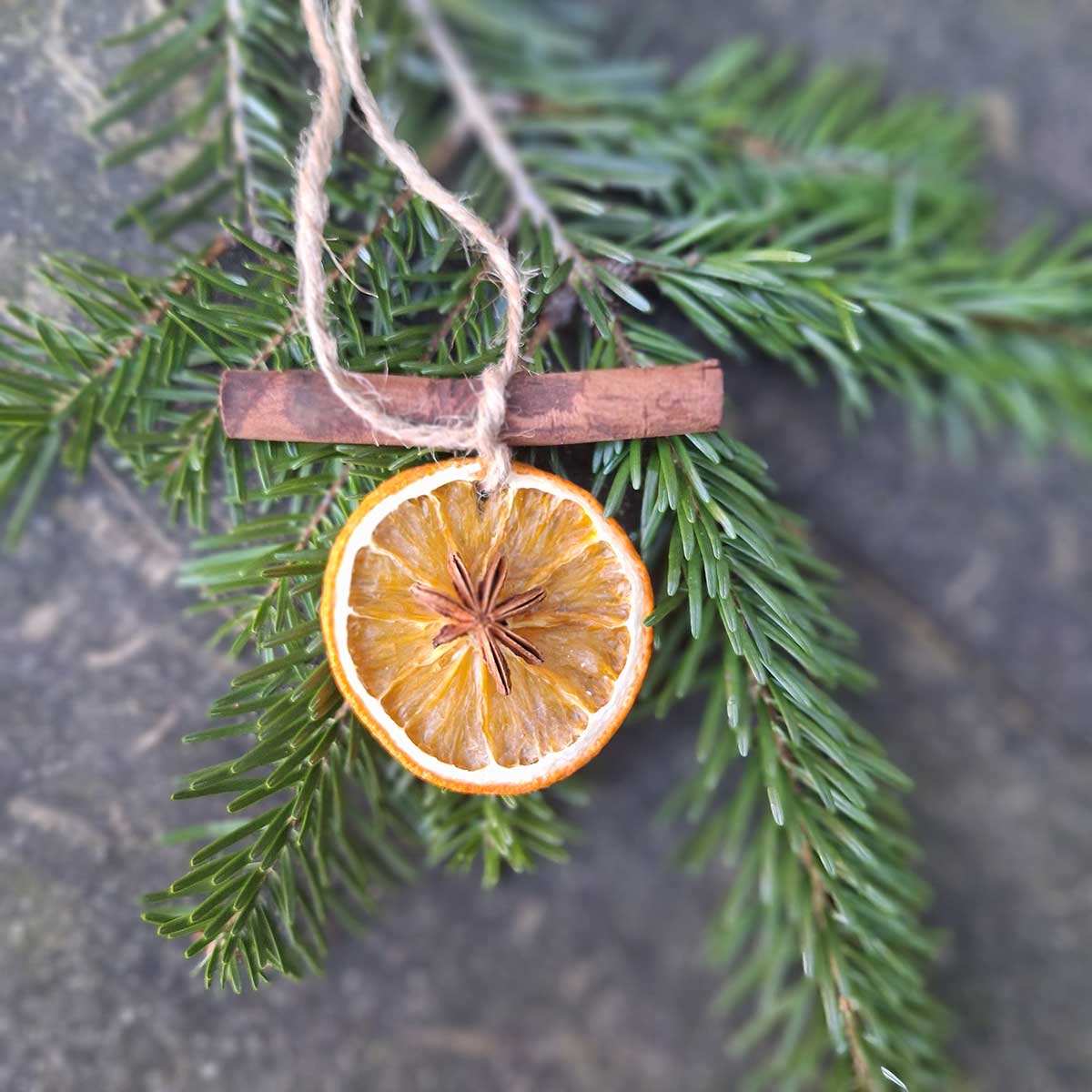 Najjednoduchším spôsobom, ako sušené pomaranče využiť, je zavesiť ich na vianočný stromček. Môžete ich doplniť tyčinkou škorice a mašličkou.