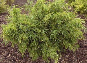 Je vhodný tam, kde nie je dostatok miesta, pretože rastie trsovito a nerozrastá sa. Je to jeden z najodolnejších bambusov. Má svetlozelené listy a oblúkovité steblá.