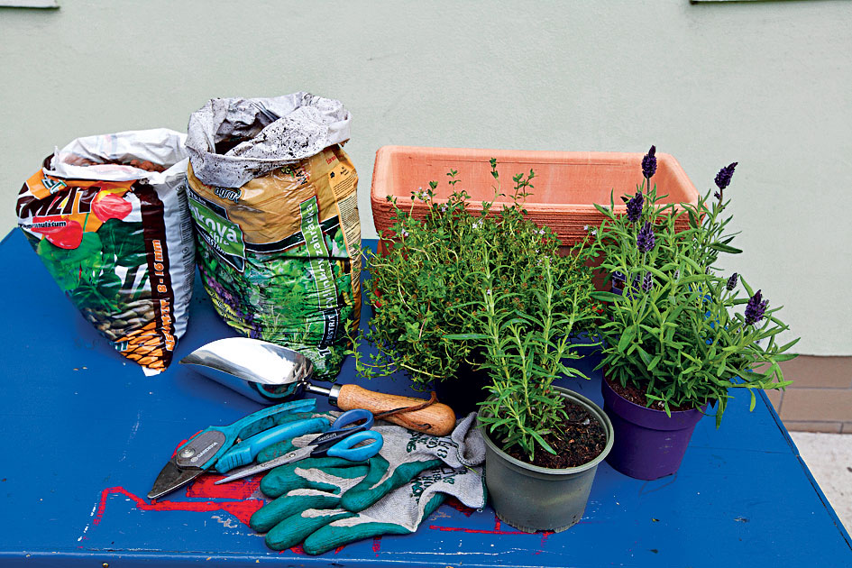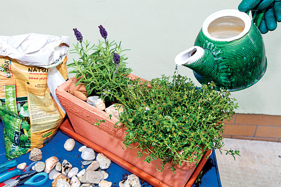 Do zeminy, v ktorej budú bylinky rásť, zakomponujeme drobné kamienky – cez deň sa budú v substráte nahrievať a v noci zasa zohrievať korene byliniek.