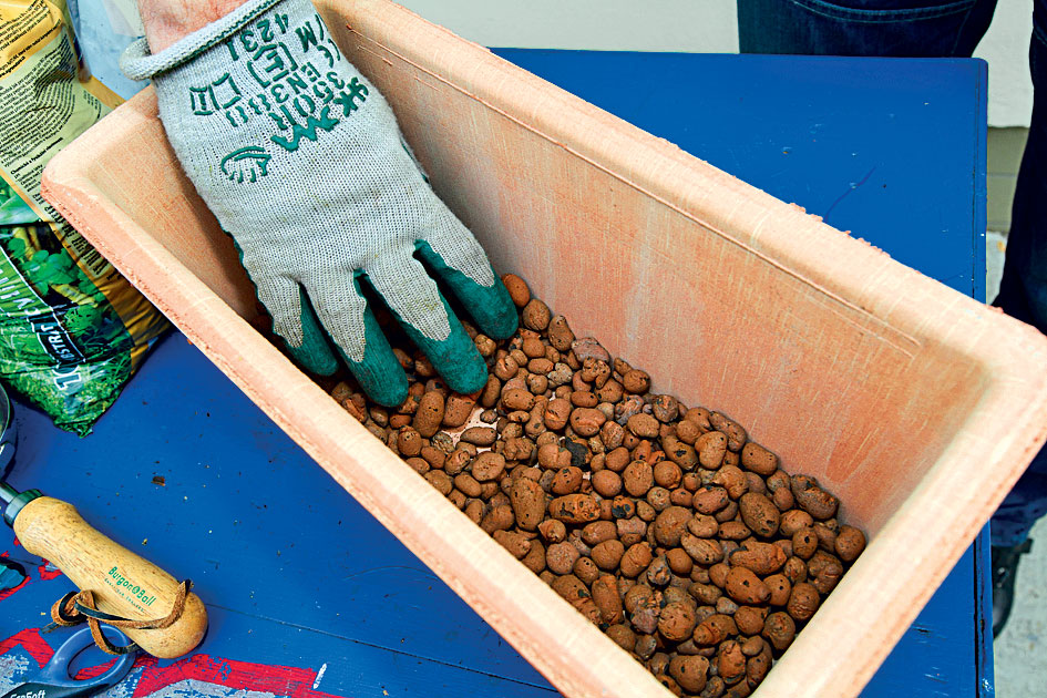 Na dno nádoby dáme drenážnu vrstvu – keramzit. Bylinky neznášajú premokrený substrát. Ak má nádoba odtokový otvor, drenáž nie je potrebná.