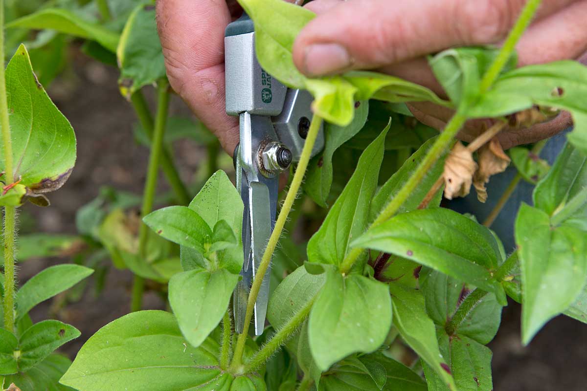 Odkvitajúce kvety cínií a iných letničiek pravidelne odstrihávame až po listový uzol, z ktorého zakrátko vyrastú nové kvety.