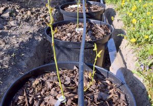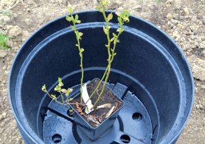 - na pestovanie čučoriedok sú ideálne hlbšie rigoly či kanály? Tie treba od okolitej pôdy oddeliť pevnou fóliou. Takto pripravený základ vyplníme kyslým substrátom, v ktorom budeme čučoriedky pestovať. Účinnejšou cestou je pestovanie čučoriedok v nádobách, ktoré sme zapustili do zeme. Vhodné sú staré sudy či vedrá. V našom návode sme použili plastové výsadbové kontajnery na dreviny.