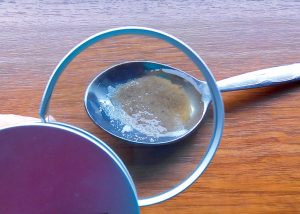 Pred zmiešaním urobíme jednoduchý test – piesok zalejeme na lyžici octom. Pomocou lupy pozorujeme reakciu. Ak nevidíme žiadne šumenie, piesok neobsahuje vápnik.