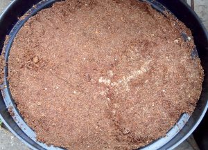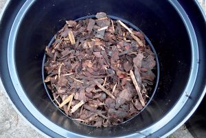 Spodok pestovateľských nádob oddrenážujeme priepustným materiálom. Použiť môžeme drevnú štiepku, drvenú kôru, podrvené konáre či zrezané konáriky.