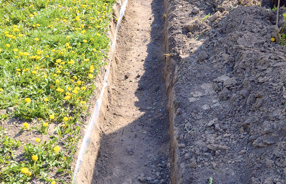 Na vyčlenenom mieste vymeriame a vykopeme výsadbový kanál, ktorého šírku a hĺbku prispôsobíme veľkosti výsadbových nádob.