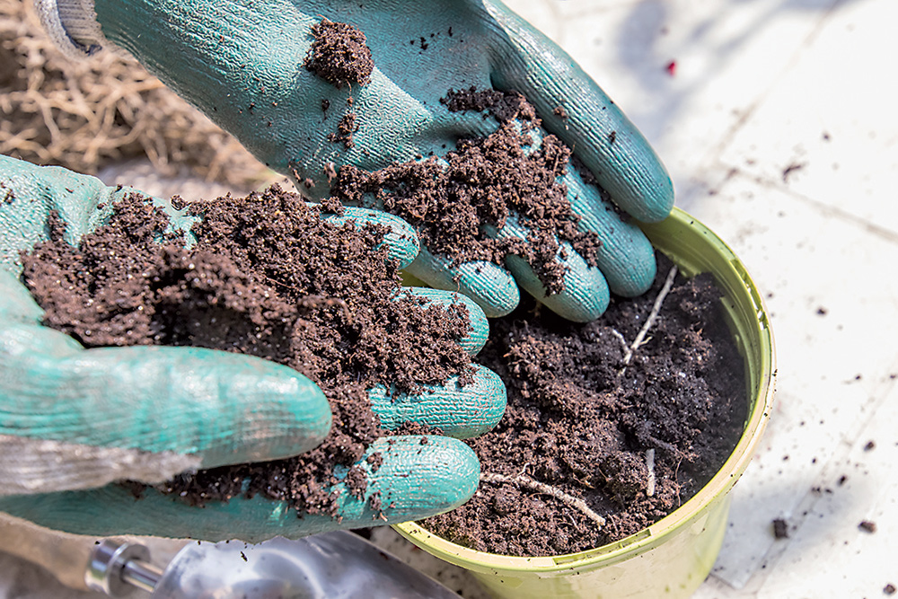 Menšie plastové črepníky naplníme kvalitným substrátom na výsevy a rozmnožovanie. Zmiešame ho s perlitom alebo pieskom a povrch dobre utlačíme.