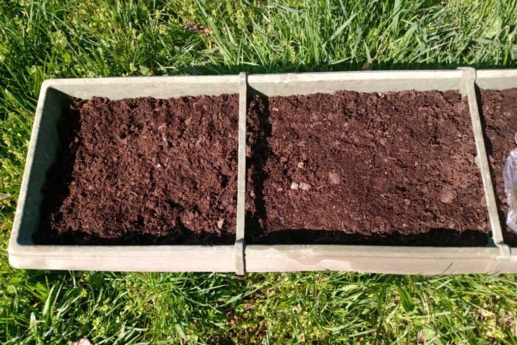 Pripravíme si hrantík a naplníme ho čerstvým substrátom.