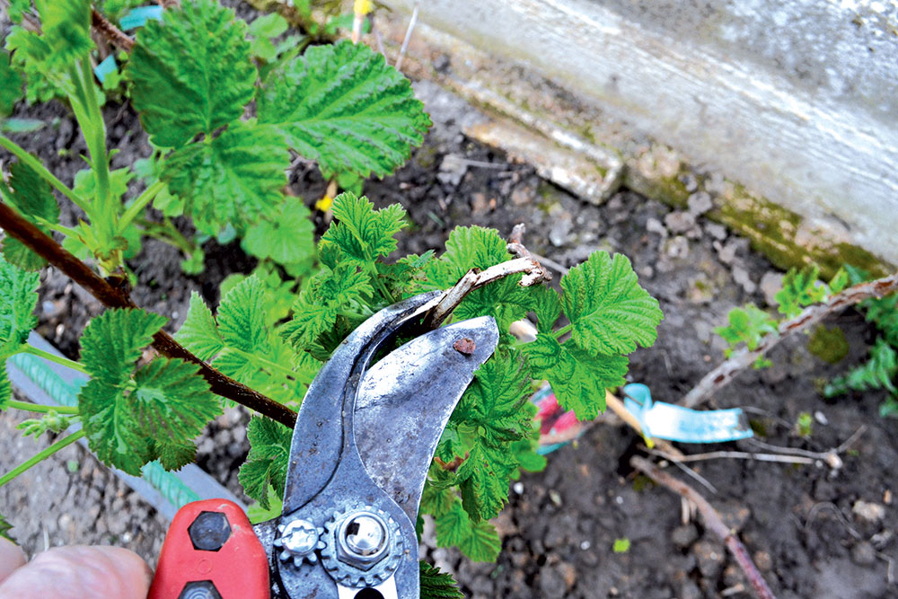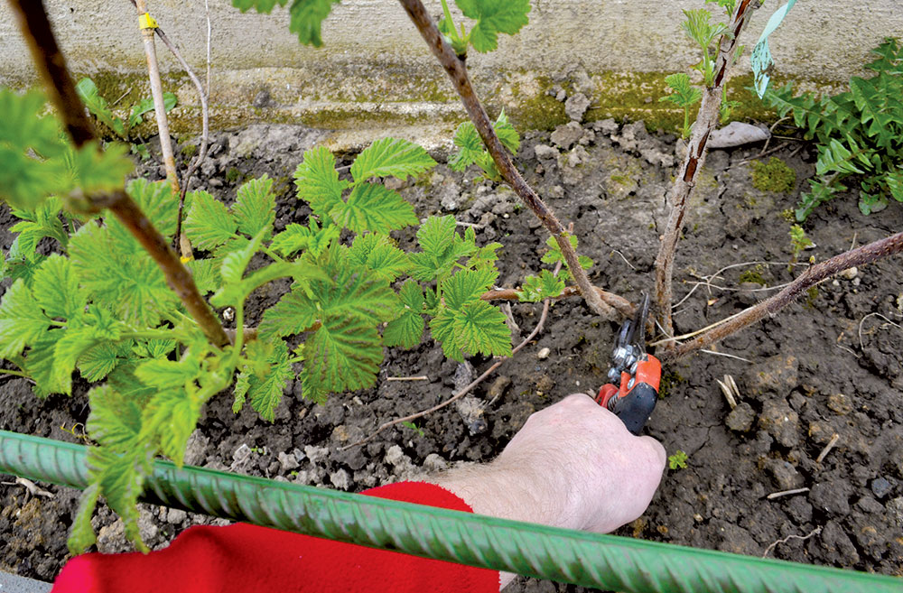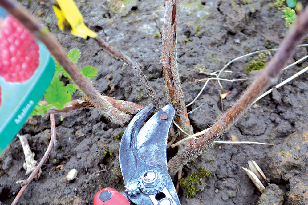 Z porastu malín najskôr odstránime všetky slabo vyvinuté výhony. Toto robíme vždy ako prvé.