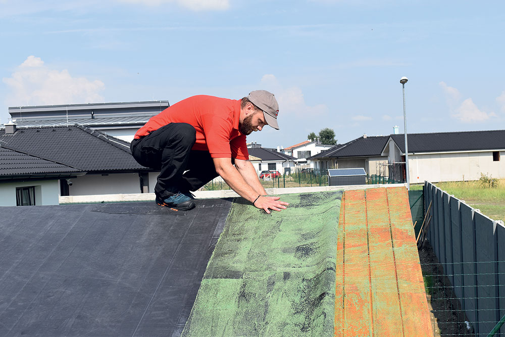3. Po rozložení membrány na streche sa jedna polovica preloží na druhú a pristúpi sa k jej lepeniu.