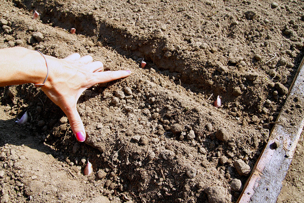 V chladnejších podmienkach sadíme strúčiky cesnaku hlbšie, aby sme ich ochránili pred zamrznutím. Na úrodu cesnaku zasadeného na jeseň sa môžeme tešiť už začiatkom júna.