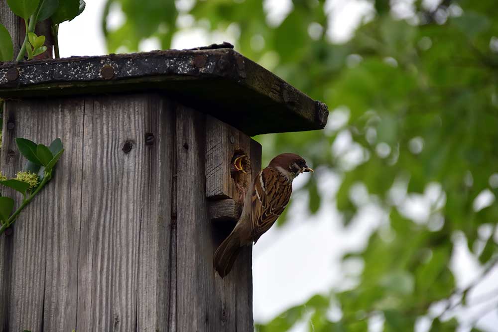 - Ak majú vrabce kde hniezdiť, sú v záhrade veľmi užitočné. Povzbudiť ich k hniezdeniu môžeme aj rozvešaním vtáčích búdok. Na ich inštaláciu nie je nikdy neskoro. Vyhovujú im uzavreté búdky s otvorom, ktorý má priemer 4 centimetre. Búdku treba umiestniť na stanovište, kde sa k nemu nedostanú mačky. Vchod do búdky vybavíme dvojitou prednou stenou, ktorá predĺži vstupnú chodbu a zabráni tak kunám požrať mláďatá.