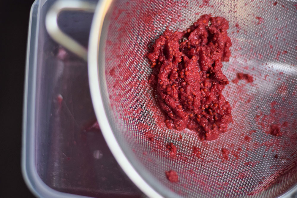 V tomto prípade odporúčam zvážiť pasírovanie, lebo tých jadierok by bolo už v koži priveľa. Postup sa tým pádom len jemne upraví, najprv sa pomixuje ovocie s jadierkami, cez gázu prepasírujeme a až do tejto hmoty sa domixuje banán na osladenie. Zvyšok postupu sa nemení.