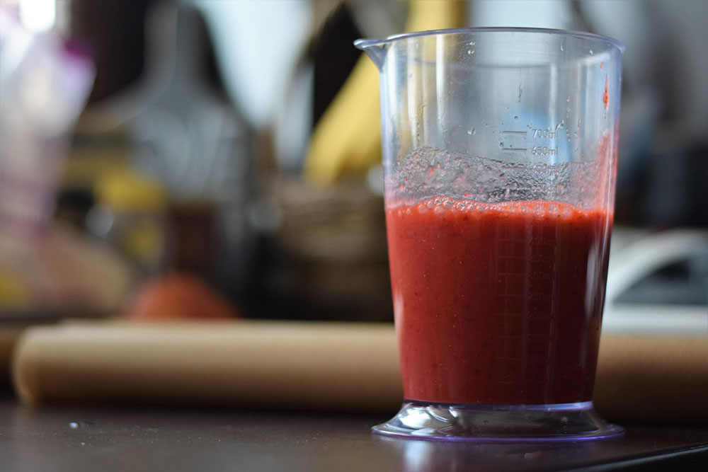 Načistíme ovocie, nič neuberáme, nič nepridávame. Pomixujeme. Používam obyčajný ponorný mixér.