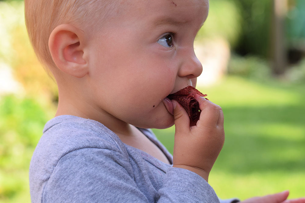 V dóze vidno množstvo koží z 500 ml ovocnej hmoty. Možno málo, ale pre deti najlepšia maškrta, ktorej zloženie dokonale poznáte. 100% ovocie, 100% slnečných lúčov.