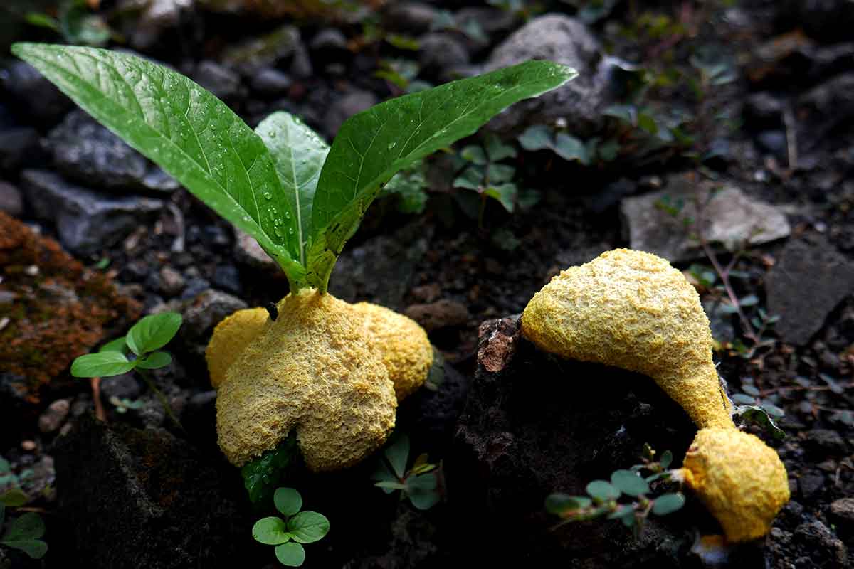 Najznámejšia slizovka aj v našich končinách, slizovka žĺtková (Fuligo septica), sa môže zjaviť vo vašej záhrade takmer bez povšimnutia. Objavuje sa po daždi alebo výdatnom polievaní ako žltkastá pena na mulči. Často vyzerá, že sa tam teleportovala cez noc – a vlastne, ďaleko od pravdy to nie je. Vie totiž vyrásť o niekoľko centimetrov za pár hodín.