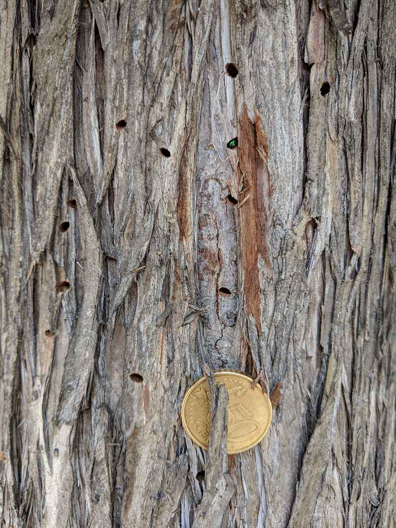 Hľadajte dierky v kmeni a konároch