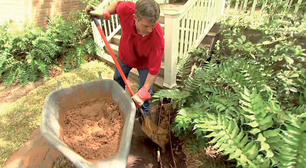 Trasu obrubníka si vyčistíme od zeme, poodstraňujeme prekážky, ako sú rastliny, korene a kamene. Lopatou alebo rýľom aspoň podľa oka zarovnáme.
