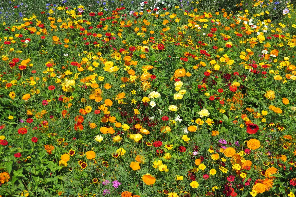 Všetky naše kvetinové zmesi sú určené na priame výsevy. Odporúčaná výsevná dávka je 2 až 6 g/m², ideálne do riadkov vo vzdialenosti 12 – 15 cm. Výsev do riadkov umožňuje opakované okopávanie a pletie pred zapojením porastu, čo pomáha prirodzene odstraňovať burinu. Neželané rastliny medzi riadkami možno ľahko identifikovať a ručne odstrániť. Termín výsevu závisí od konkrétnej zmesi – spravidla na jar, koncom leta alebo na jeseň.