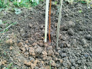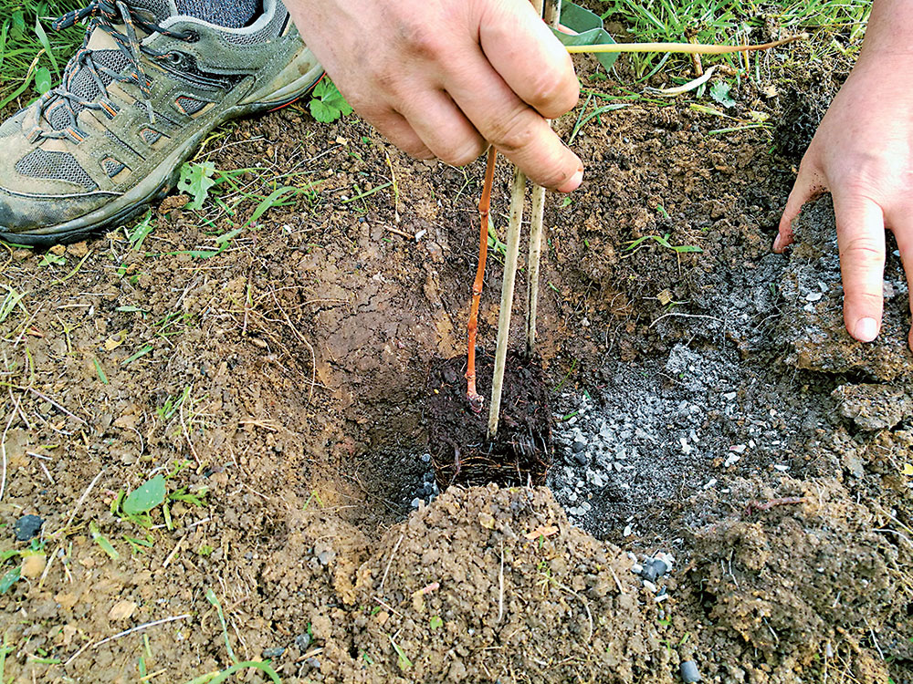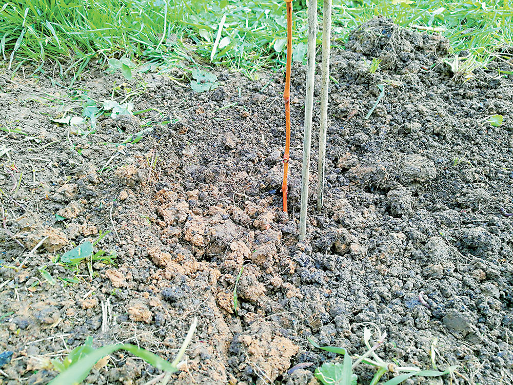 K sadenici hneď pri výsadbe umiestnime oporný kolík, o ktorý ju budeme v budúcnosti upevňovať. Po zime bude značkou miesta výsadby.