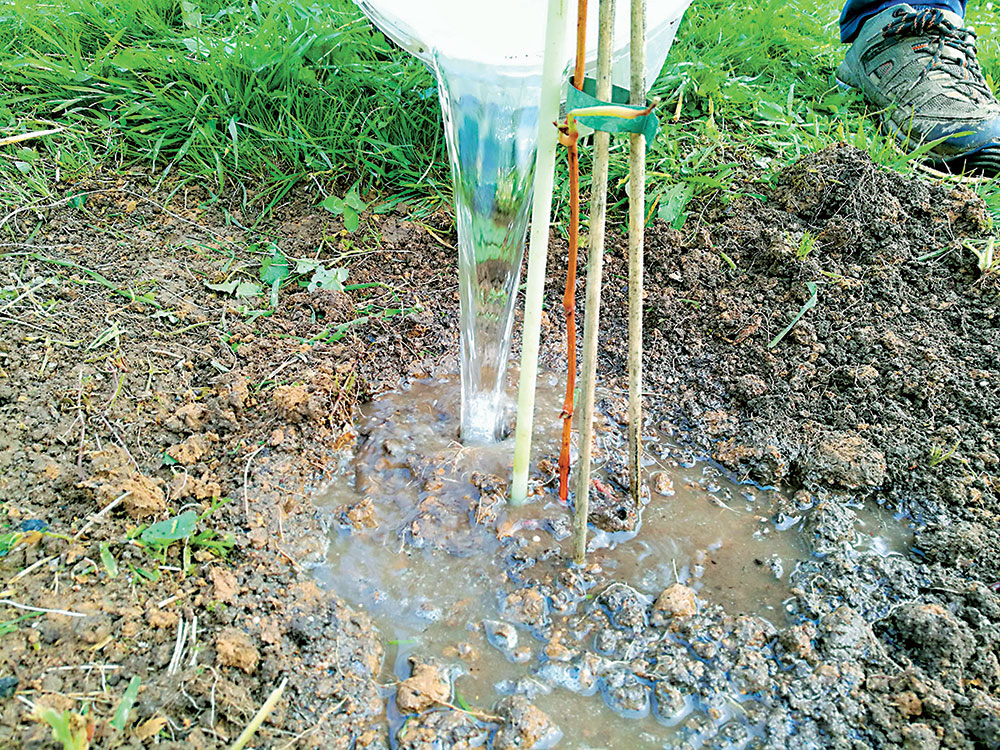 Nevyhnutným záverom každej výsadby je dôkladná zálievka. Sadenici doprajeme dostatok vody a zalievame aj v nasledujúcich týždňoch.