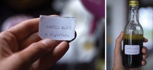 Takýto upravený macerát vrátime do hrnca a pomaličky na nízkom stupni necháme redukovať na polovicu.Následne za horúca nafľaškujeme. Samozrejme množstvo vody prispôsobíme podľa potreby, z pollitra vody získate napokon cca 200 ml tekutého korenia.
