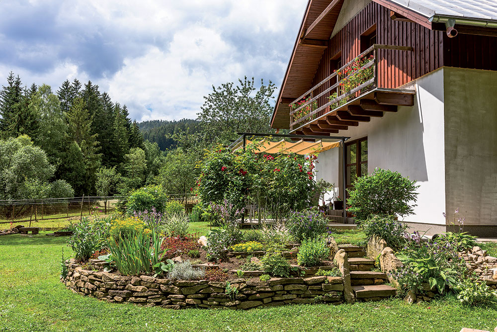Zaujal nás aj prístup majiteľky k rastlinám. „Mnohé rastliny si meníme medzi známymi. Nechám ich zakoreniť, rozrásť sa a potom ich rozsádzam do rôznych kútov záhrady. Keď si občas nejakú rastlinu kúpim, robím to isté, z jedného kusa si delením alebo zo semienok namnožím veľa ďalších. Darí sa mi to s ľaliovkou, heleniom, levanduľou, vajgéliou, ľubovníkom, chryzantémou, rudbekiou, echinaceou, brečtanom i skalníkom. Samozrejme, stromy ako previsnutá moruša, céder a iné okrasné stromy sme kupovali. Zberám aj semená letničiek, z ktorých ďalší rok dopestujem sadeničky.“