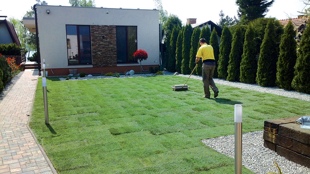 Celú plochu čerstvo položeného trávnika nakoniec povalcujeme, aby ste dokonale spojili kusy mačiny a zahladili medzery.