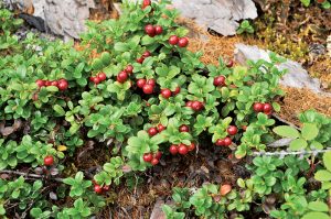 Počas roka vyžadujú veľa vody, preto je potrebné im pravidelne dopriať bohatú zálievku. Plodom je červená lesklá bobuľa, ktorá dosahuje väčšiu veľkosť ako brusnica. Dorastá na vzpriamených stonkách, ktoré vyrastajú nad úrovňou „koberca“. Plody sú chutné a majú podobné využitie ako brusnice.