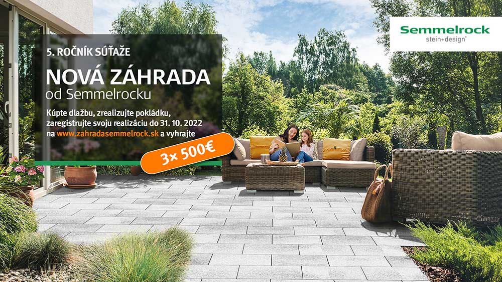 Ak si v termíne od 17.3. do 31. 10. 2022 zakúpite dlažbu alebo akýkoľvek iný doplnkový tovar značky Semmelrock a využijete ho na skrášlenie svojho exteriéru, môžete sa zapojiť do súťaže. Na realizáciu však musíte použiť výlučne produkty od spoločnosti Semmelrock. Fotku zrealizovanej plochy exteriéru potom už len stačí zaregistrovať na stránke www.zahradasemmelrock.sk a vyplniť jednoduchý formulár. Organizátor súťaže dňa 22.11.2022 vyžrebuje 3 výhercov, ktorí získajú jednorazovú odmenu v hodnote 500 eur.