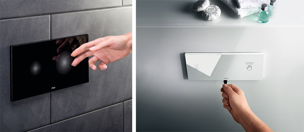 So senzitívnymi ovládacími doskami Visign for Style, Visign for More alebo ovládacou doskou Visign for Care vždy s funkciou Viega Hygiene+ sa vyhnete hygienickému riziku pri absencii pravidelného odberu. Ovládacie dosky sa inštalujú v kombinácii s podomietkovou splachovacou nádržkou Viega ideálne na konci radovej inštalácie alebo kdekoľvek v kruhovej inštalácii. Môže sa jednať o splachovanie toalety alebo pisoára. Ovládacia doska dokáže sama spustiť splachovací proces – vo vopred nadefinovanom časovom odstupe od posledného manuálneho spláchnutia – s presne takým množstvom vody, ktoré stačí k výmene vody v danom stagnujúcom úseku.