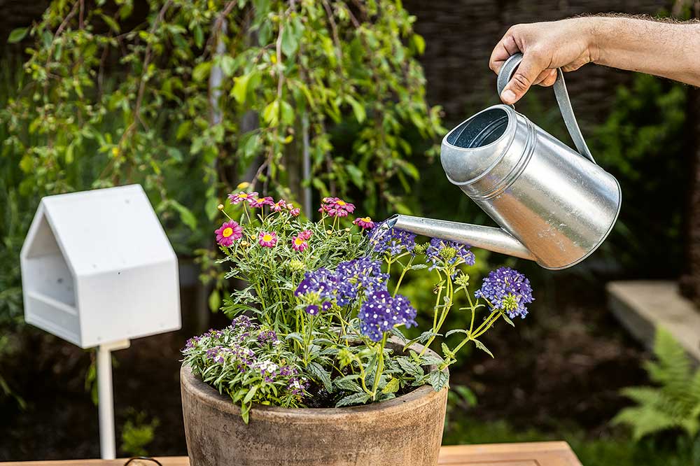 Zálievka je predpokladom rýchleho uchytenia, preto ju nezanedbávame. Prihnojenie zatiaľ nie je potrebné. Vysadené kvetináče umiestnime na vybrané miesta v exteriéri.