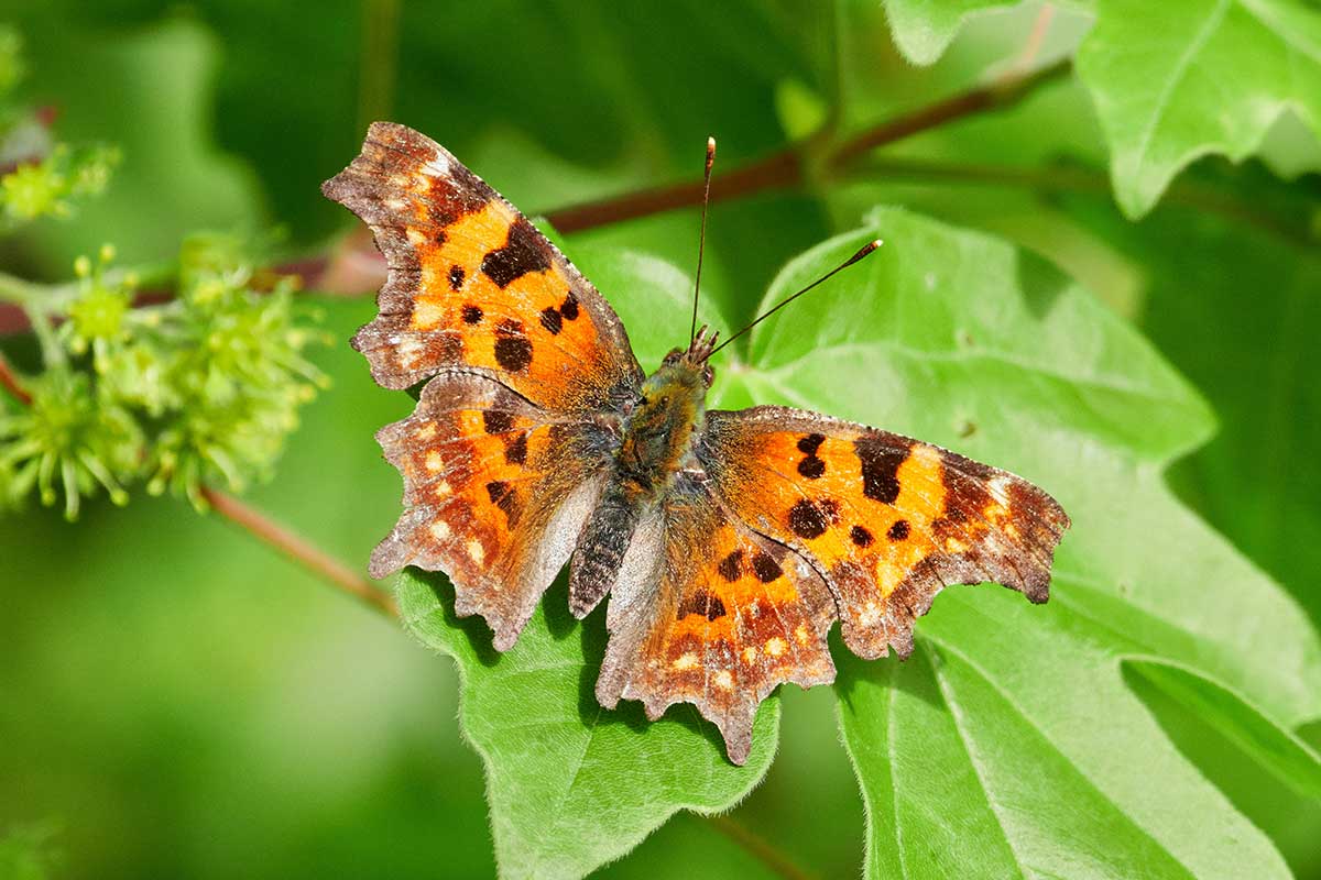 Aj babôčka zubatokrídla (Polygonia c-album) patrí medzi skoré a otužilé motýle. Je to menší motýlik s charakteristickými, akoby zubatými okrajmi krídel. Na spodnej strane dolného páru krídiel má bielu škvrnu v tvare písmena „C“, na čo odkazuje aj jej latinské meno.