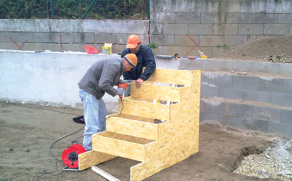 Ak budujeme schodisko so strateným debnením, jeho uchytenie o podklad je dôležitý moment. V opačnom prípade stačí len zafixovanie debnenia tesne pri murive štrkovým zásypom.