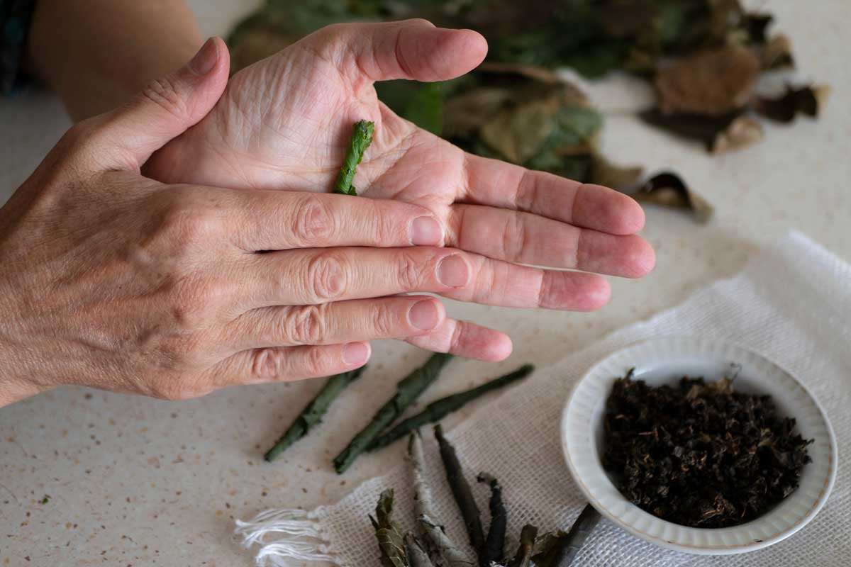 Potom listy na stole ručne rolujeme, teda šúľame do ruličiek. Narušíme tým bunkové steny a spustíme impulz na fermentovanie. Je dôležité vystihnúť správnu mieru zvädnutia, aby sa listy dali dobre rolovať a z buniek sa uvoľnila šťava. Príliš zvädnuté listy by už mohli odolávať snahe takto ich narušiť. Ak po rolovaní materiál chytá hnedasté tóny, všetko prebieha, ako má.
