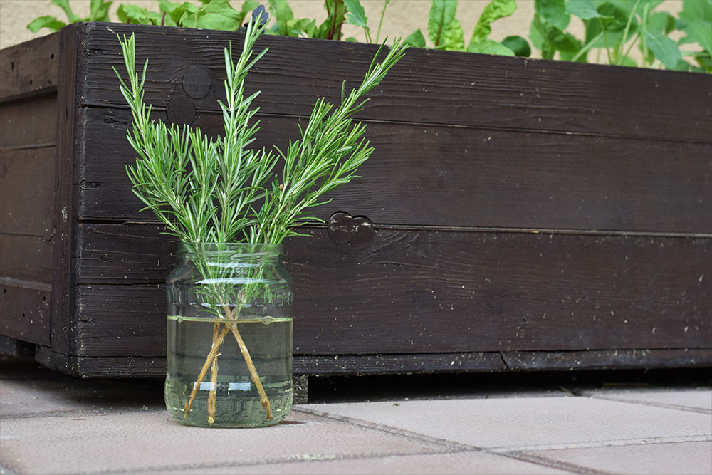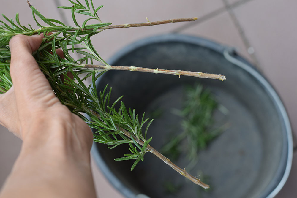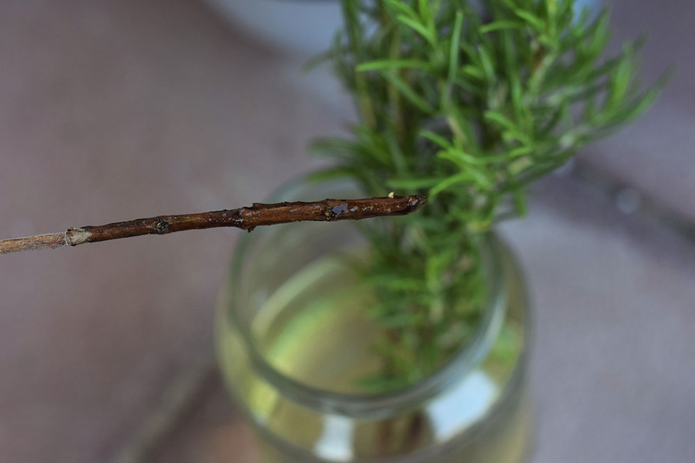 Pán rozmarín začal po troch rokoch pravidelne kvitnúť. To vnuklo nápad jeho tuhý korienok aj množiť, rozdávať priateľom a pripraviť mu prípadnú náhradu, lebo predsa len, raz zostarne. Takže má za sebou úspešné množenie odrezkami. Teraz je na to ideálny čas. Vyskúšala som dávať odrezky priamo do substrátu s pieskom, dokonca priamo len do piesku, no ako najúspešnejší a najefektívnejší sa osvedčil nasledovný postup:
