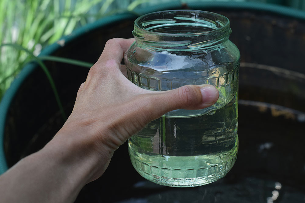 Naberám na zakorenenie odchytenú dažďovú vodu.